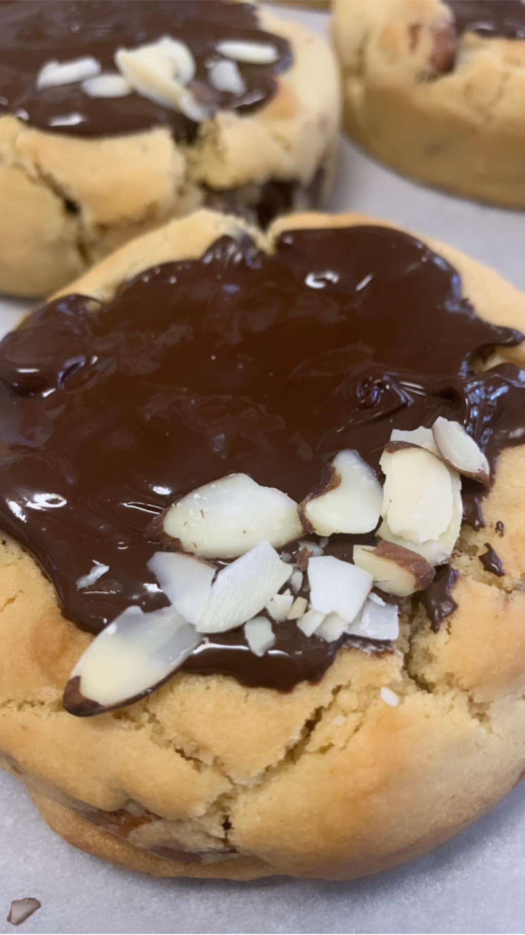 Comfort in cookie form. This soft, almond-kissed chocolate chip cookie is filled with tart dried cherries, crunchy toasted almonds, chunks of cherry-almond chocolate bar, and rich dark chocolate chips. It’s the perfect balance of sweet, nutty, and a little bit tangy—like a warm hug you can eat.