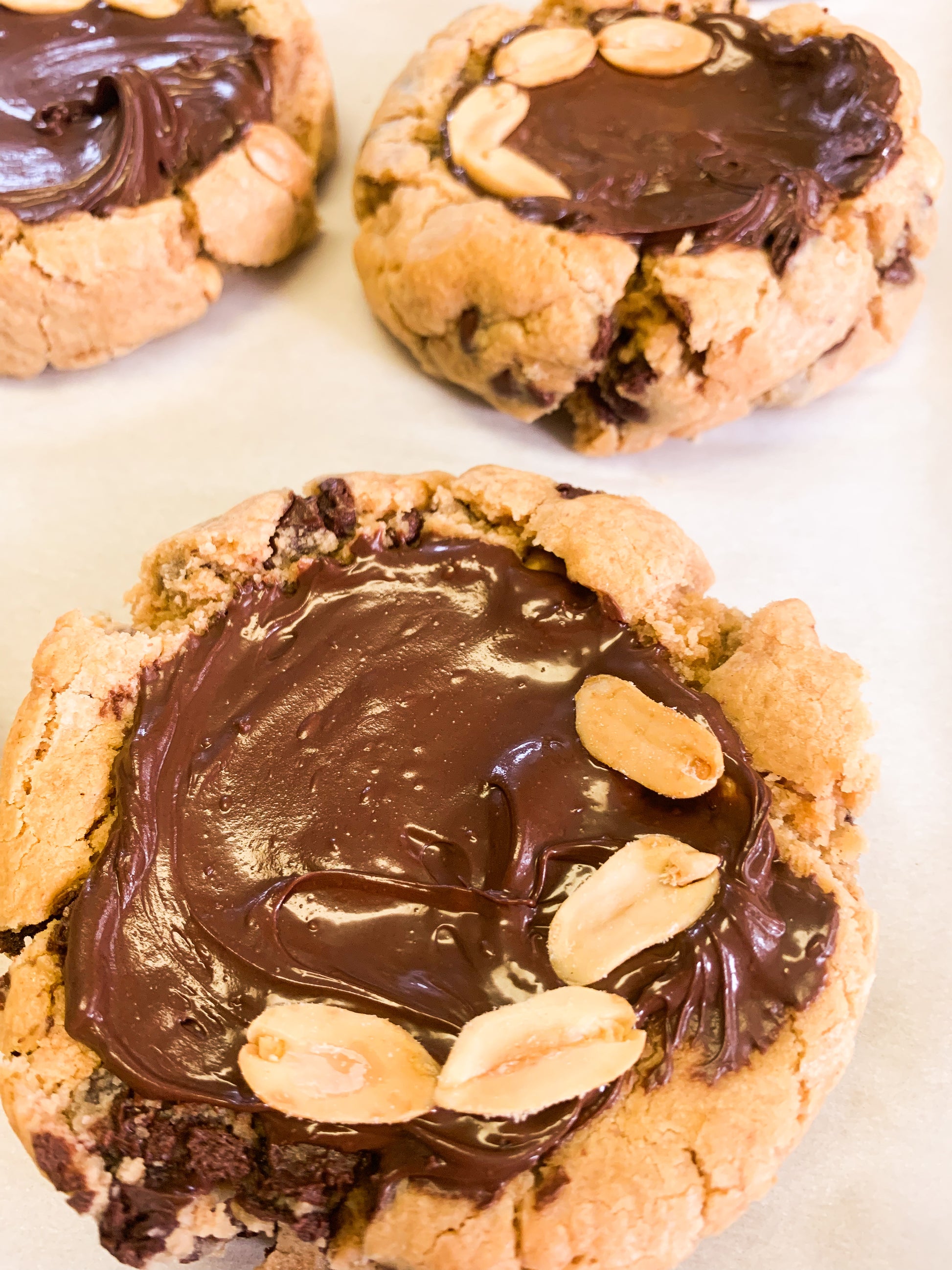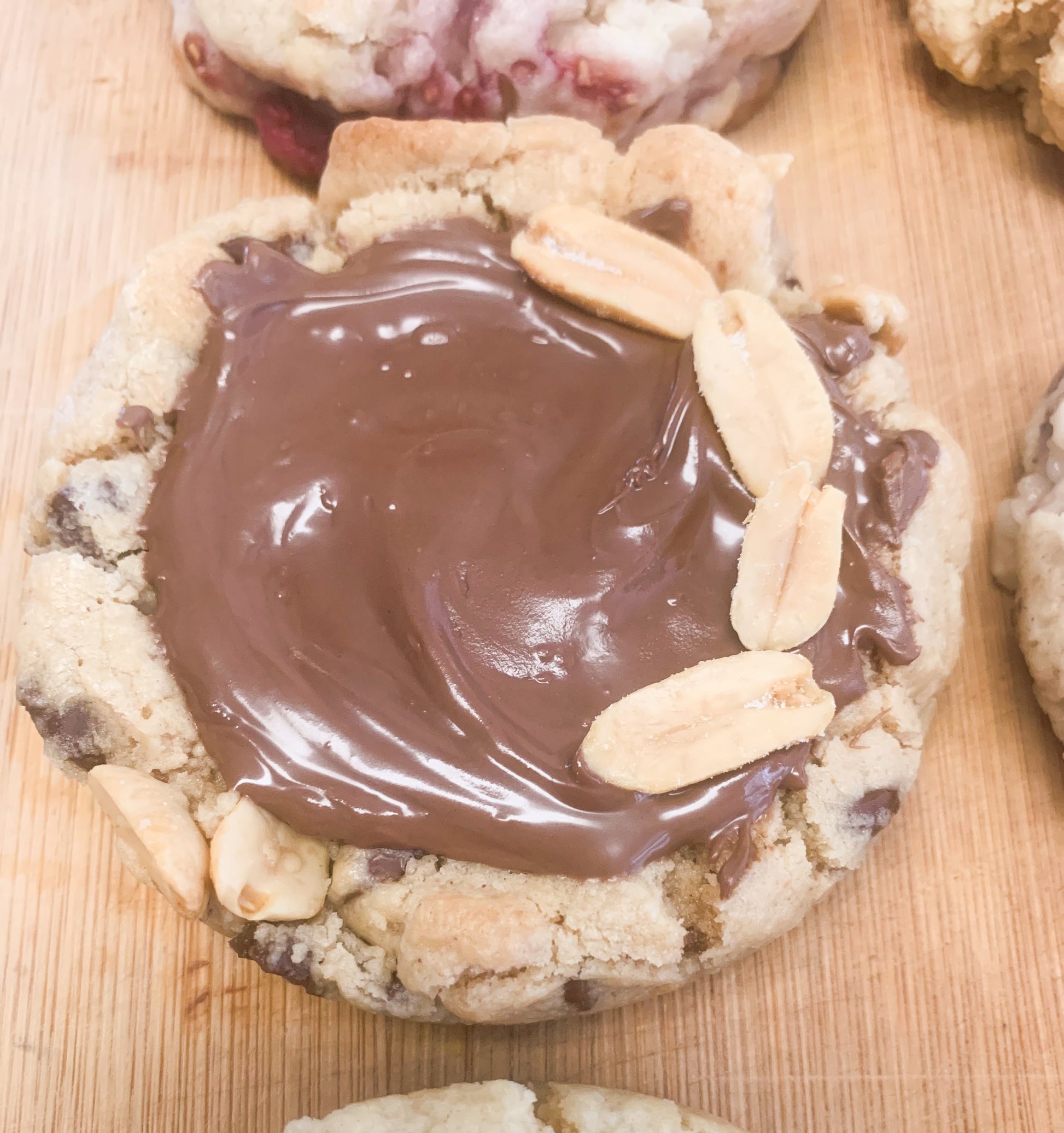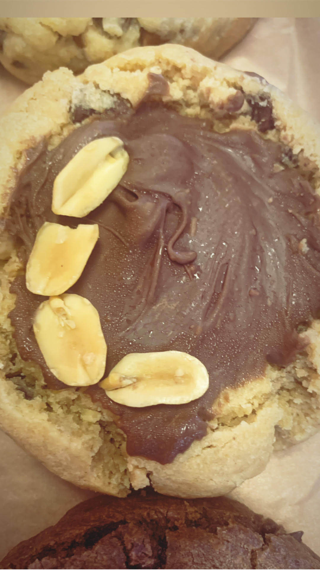 Peanut butter cookie with Milk Chocolate Chips, topped with Milk Chocolate and lightly salted peanuts. We only use peanut butter that has peanuts and salt for ingredients. No hydrogenated oil or ingredients we can’t pronounce! The flavor combination we are going for in this cookie is inspired by the Baskin Robbins Peanut Butter chocolate ice cream. It’s the best in Savannah!